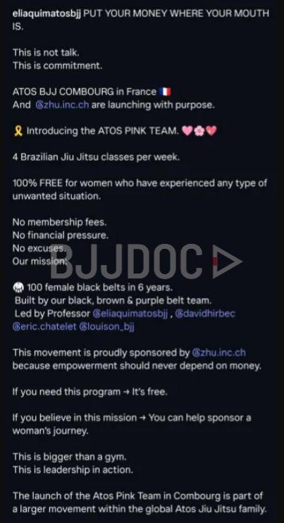 The timing has drawn immediate criticism online. The program’s launch comes just days after Eliaquim posted a controversial statement of unwavering support for Andre Galvao and Angelica Galvao, even as Atos headquarters in San Diego moved to separate the couple from all organizational roles and high profile competitors departed en masse.