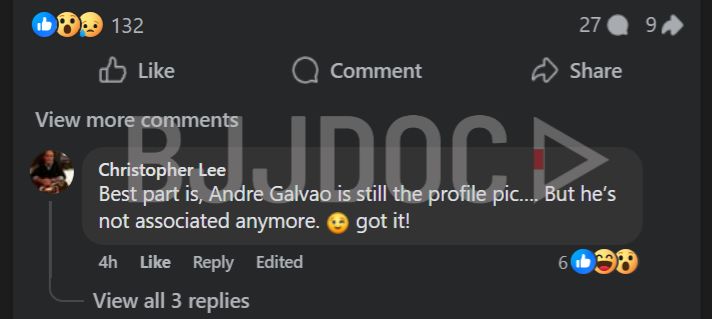 Commenters on social media were quick to point out the profile posting this statement literally had Andre Galvao as the profile picture when they made the announcement.