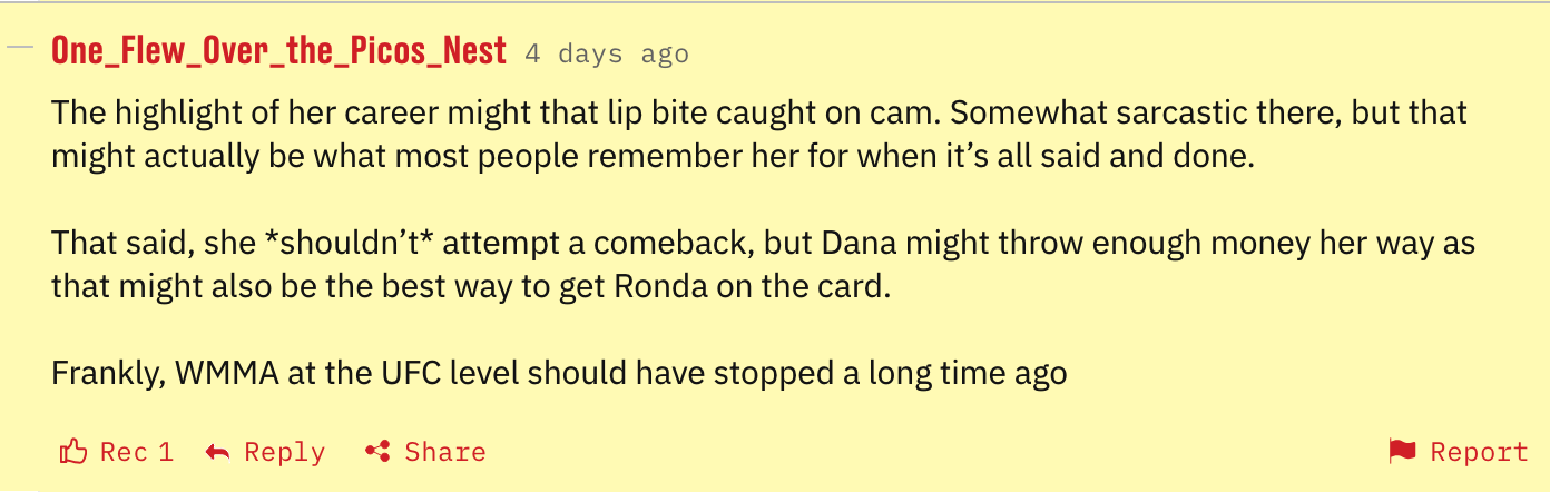 As you know, MMAmania.com churns out a ridiculous amount of stories weekly. And if you don’t refresh this site constantly, you might just miss an amazing story. Or, if you don’t go read the comments section on each story, you might miss a wisecrack that will leave you LOL’ing.