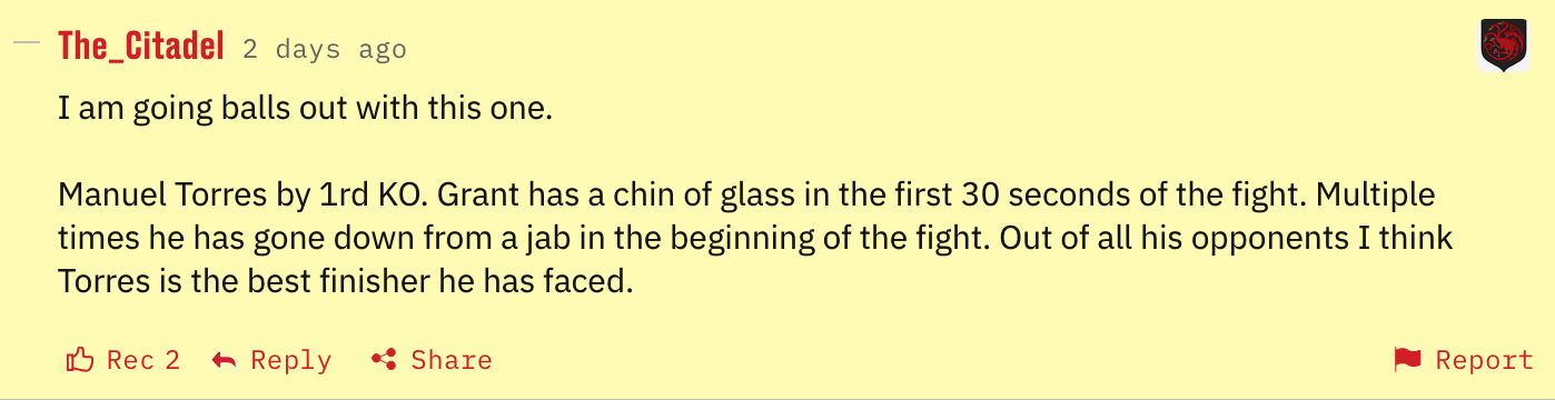 Take a bow, The_Citadel, you absolutely nailed Manuel Torres by first-round knockout … I hope you put money on it.