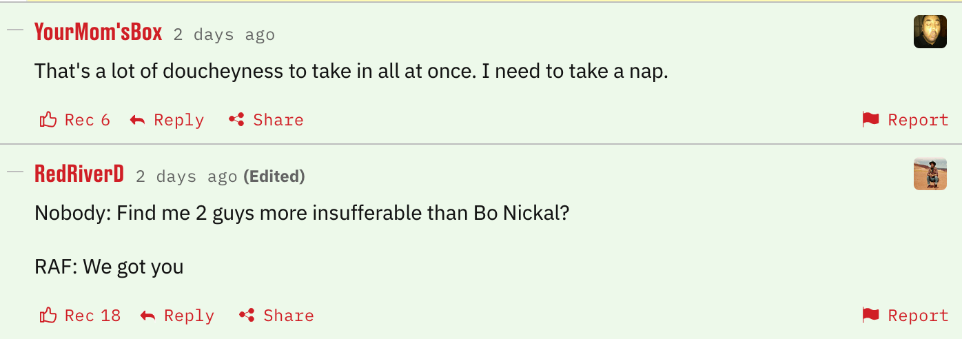 During the RAF pre-fight press conference, Colby Covington and Luke Rockhold teamed up to clown Bo Nickal — well, our readers decided to get them back.