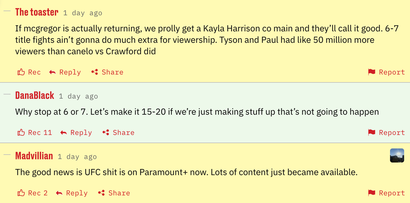 As you know, MMAmania.com churns out a ridiculous amount of stories weekly. And if you don’t refresh this site constantly, you might just miss an amazing story. Or, if you don’t go read the comments section on each story, you might miss a wisecrack that will leave you LOL’ing.