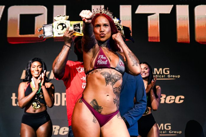 Pictured: BKB Women’s Welterweight Champion Jamie “Red Queen” Driver. | BKB