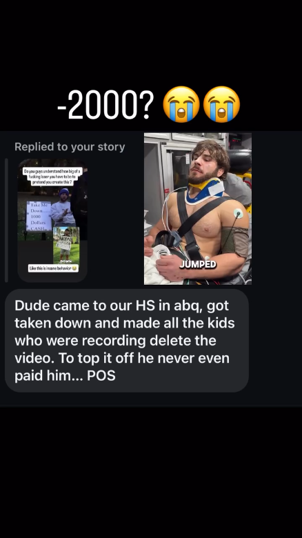 One incident allegedly occurred at a high school in Albuquerque, where witnesses claim Poullas was taken down and subsequently had students delete their recordings. According to these accounts, the challenger was never paid the promised prize money.