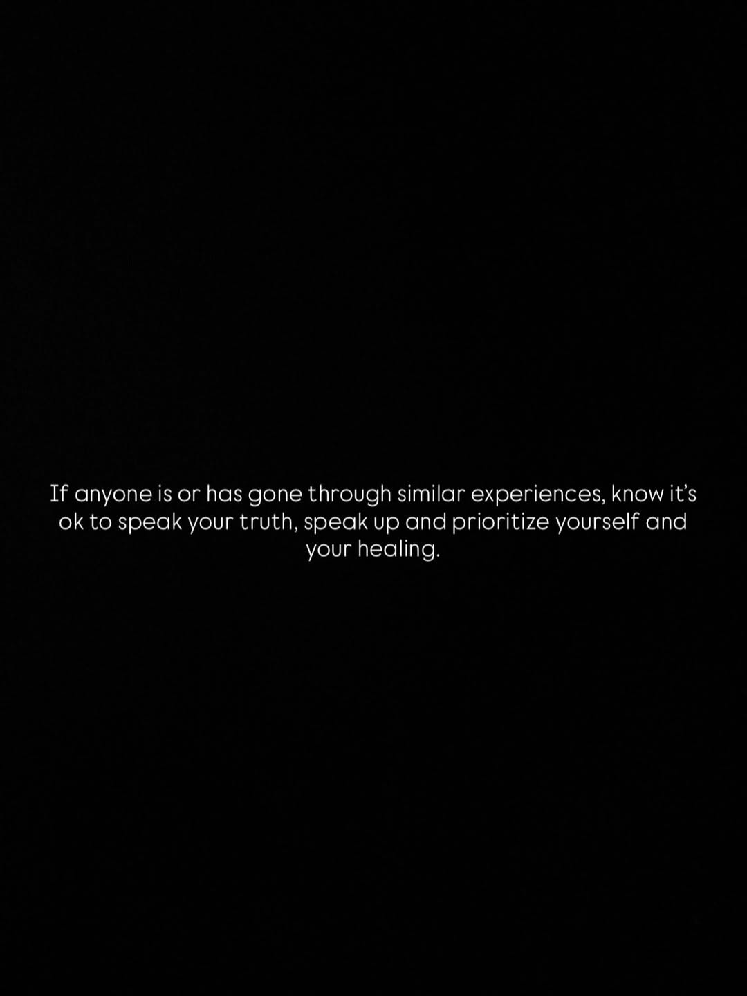 “If anyone is or has gone through similar experiences, know it’s ok to speak your truth, speak up and prioritize yourself and your healing.