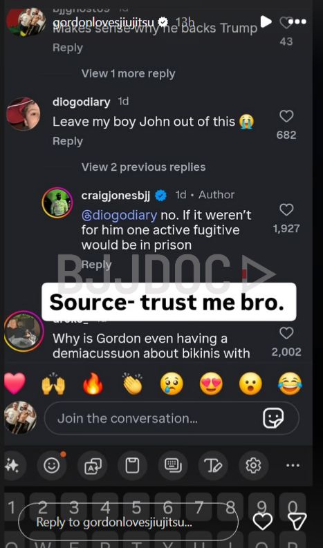Gordon Ryan has publicly refuted allegations made by Craig Jones suggesting that coach John Danaher aided fugitive Izaak Michell in evading authorities.