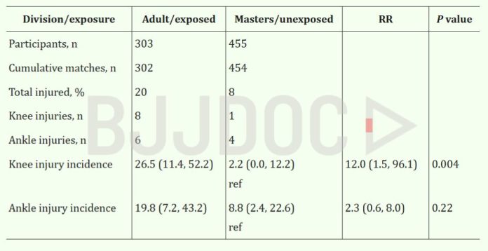 The 2021 competition data showed injured participants had an average age of 30.9 years and an average of 10.1 years of jiu jitsu experience, indicating that even seasoned practitioners remain vulnerable to heel hook related injuries.