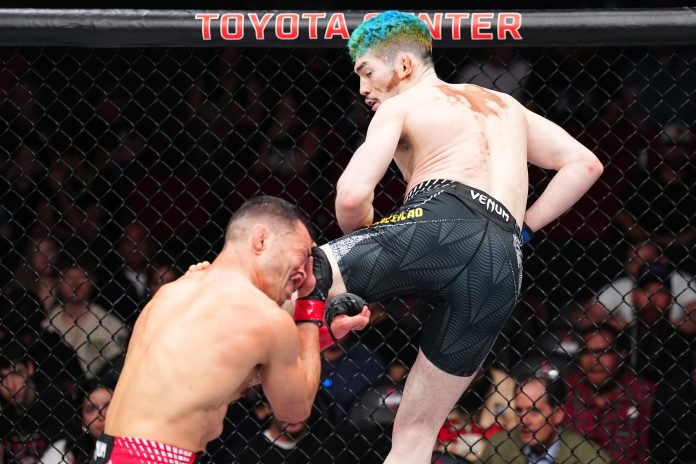 Melquizael Costa may have stolen Dan Ige’s bid for a $100K post-fight bonus award last night (Sat., Feb. 21, 2026) at UFC Houston LIVE on Paramount+ from inside Toyota Center in Houston, Tex., stopping “100 Grand Dan” with a ridiculous first-round TKO (spinning back kick and punches).