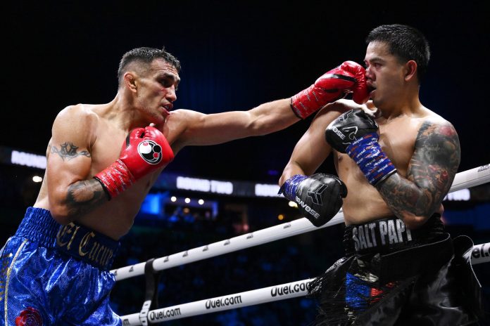 “El Cucuy” stormed back in the fifth though. He got back behind his jab, and his right hand started landing heavily as a result. Spencer was spittin’ chiclets in the fifth! In the close exchange, a cracking Ferguson right hand had Spencer on rubber legs, but the bell rang before Ferguson could secure the finish.