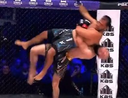 The stoppage occurred with just over two minutes left in the very first round. Gasanov was able to grab a hold of Vitor along the cage with both hands and proceeded to launch him into the air with a perfectly-executed suplex. Vitor appeared to try to grab the cage to prevent the slam, but it was too late. Gasanov went full beat mode and slammed Vitor onto the canvas, knocking him out cold and walking off into the sunset with the Naiza FC welterweight title in tow.