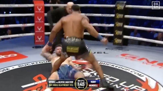 Just 29 seconds into the fourth round, Hunt landed a clean, crushing right hand that flattened Mundell.