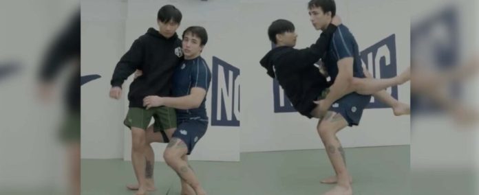 The first banned technique at Chen‘s facility is the flying scissor takedown, known in judo as Kani Basami. This movement involves jumping with full body weight into an opponent’s legs.
