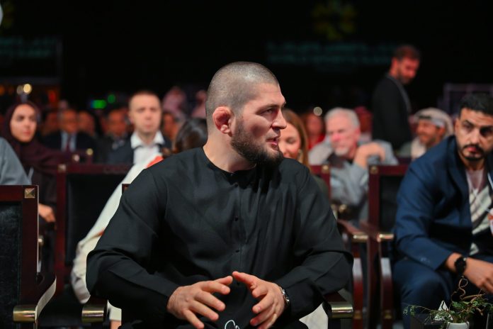 DUBAI, UAE – DECEMBER 29: Dagestani mixed martial artist Khabib Nurmagomedov attends the opening ceremony of The âWorld Sports Summit❠at Madinat Jumeirah in Dubai, United Arab Emirates on December 29, 2025. (Photo by Waleed Zein/Anadolu via Getty Images) | Anadolu via Getty Images