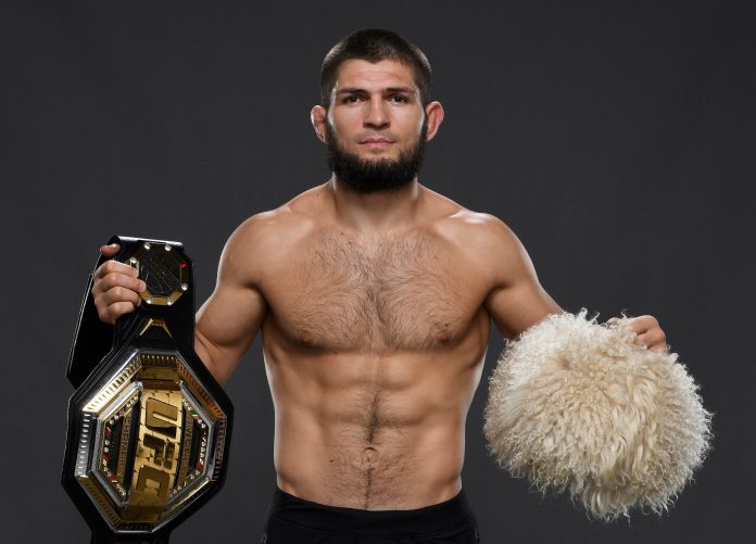 ABU DHABI, UNITED ARAB EMIRATES – OCTOBER 24: Khabib Nurmagomedov of Russia poses for a portrait backstage during the UFC 254 event on October 24, 2020 on UFC Fight Island, Abu Dhabi, United Arab Emirates. (Photo by Mike Roach/Zuffa LLC via Getty Images) | Zuffa LLC via Getty Images