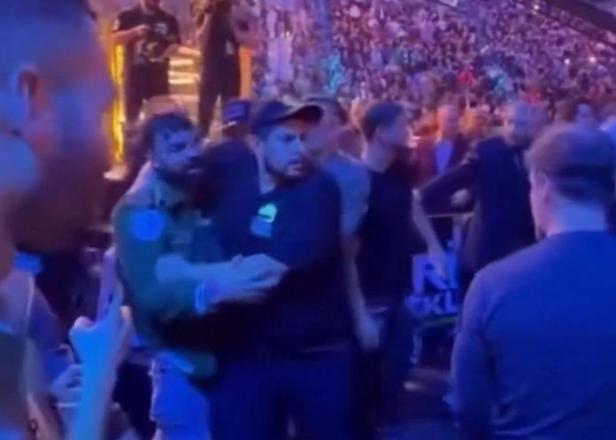 “I got bumped from behind,” Perry explained. “I was in the front row. I turned around like, ‘Hey, excuse me.’ It was Eddie Alvarez’s son’s girlfriend. I said, ‘Excuse me, watch out,’ or something. And then the son kinda leans in and I was like, ‘I was talking to her,’ but that pissed him off. He was talking, then the wife just keeps screaming and yelling at me. And I was like, ‘Look, I’m sorry.’”