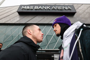 Their bout headlines a Queensberry Promotions card at the M&S Bank Arena in Liverpool, England. Fight fans around the world can catch the action live on DAZN.