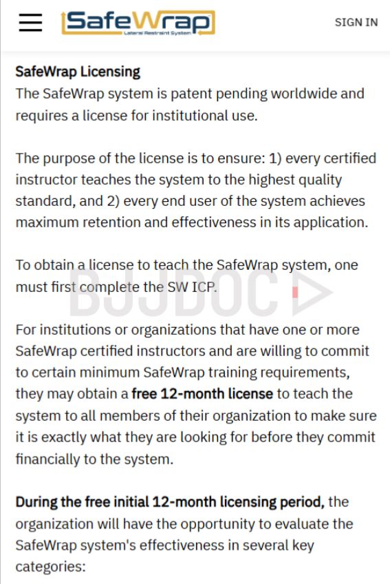 In marketing materials Safe Wrap emphasizes its “patent pending worldwide” claim, using it to make unlicensed use sound like a legal issue. In reality, you cannot patent a physical move or restraint technique outright; patents only cover specific, novel and non-obvious processes, not general methods.