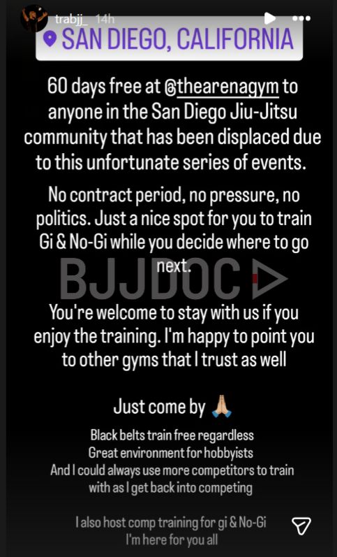 “No contract period, no pressure, no politics. Just a nice spot for you to train Gi & No-Gi while you decide where to go next.”