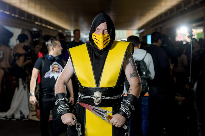 NEW YORK, NY – OCTOBER 05: A fan cosplays as Scorpion from Mortal Kombat during the 2018 New York Comic Con at Javits Center on October 5, 2018 in New York City. (Photo by Roy Rochlin/Getty Images) | Getty Images