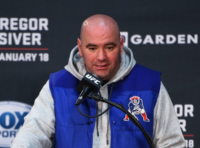 BOSTON, MA – JANUARY 18: UFC President Dana White speaks at the post fight press conference during the UFC Fight Night event at the TD Garden on January 18, 2015 in Boston, Massachusetts. (Photo by Jeff Bottari/Zuffa LLC/Zuffa LLC via Getty Images) | Zuffa LLC via Getty Images