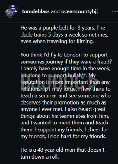 The renowned BJJ black belt took to social media to set the record straight, defending Hardy’s promotion with a detailed timeline that silenced doubters. According to DeBlass, Hardy has been training since 2017, making him eligible for black belt consideration based purely on time invested.