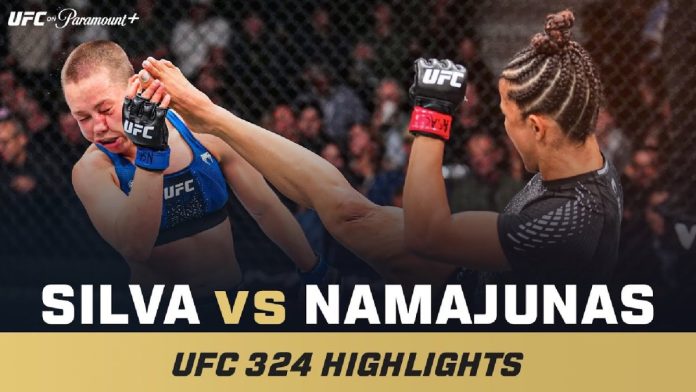 A title eliminator bout between women’s flyweight contenders took place on Saturday’s UFC 324 main card. Former two-time strawweight champion Rose Namajunas faced No. 2 ranked Natália Silva with a title shot awaiting the winner.