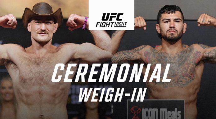 The fighters officially weighed in on Friday morning but participated in the ceremonial weigh-in later in the afternoon in front of fans.