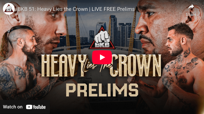 BKB Bare Knuckle Boxing will stream its preliminary fight card for “Heavy Lies The Crown” today (Sat., Feb. 21, 2026) at 11 a.m. ET, live from inside O2 Arena in London, England. The BKB 51 main card, headlined by the Bridgerweight title fight pitting Marko Martinjak (c) against Ike Villanueva, airs live on talkSPORT at 5:30 p.m. GMT and then at 8 p.m. ET on VICE TV and Telemundo Deportes Ahora.